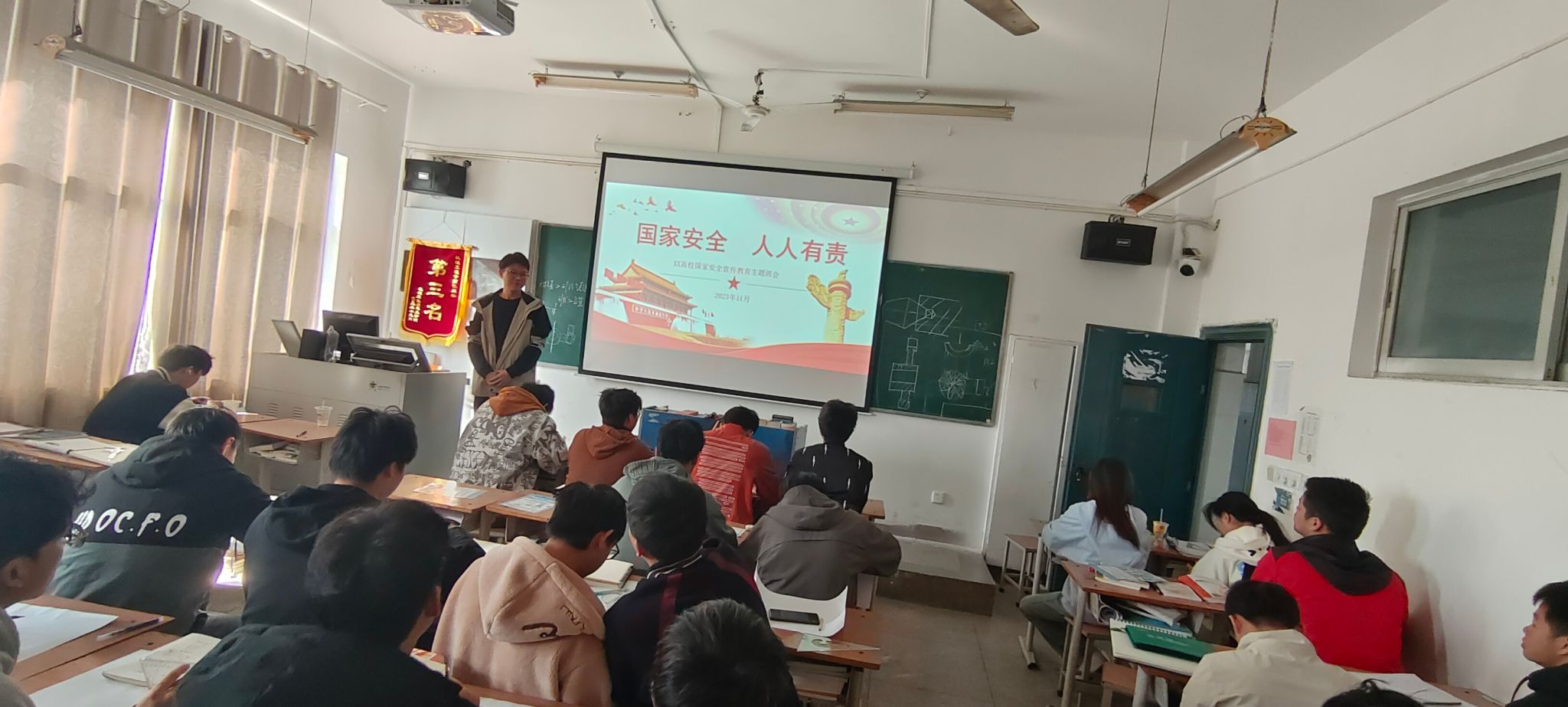 为增强全民国家安全意识,XCSport22大专机制01班于11月21日在一教508开展了国家安全宣传教育主题班会,辅导员吴文美主持班会。