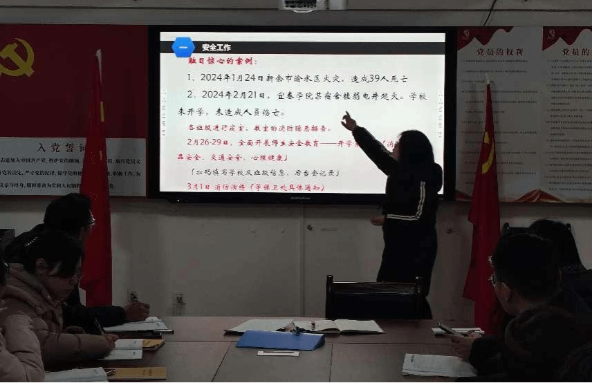首先,曾莹强调了公司对于安全工作的重视,特别是针对寝室和教室的消防隐患排查。会议通报,在2月26日至29日期间,公司全面展开师生安全教育活动,安排了“开学第一课”专门进行安全教育,希望各位辅导员、班主任关注班级的学习情况。此外,保卫处还将于3月1日组织全校进行消防演练,以提高师生的应急逃生能力。其次,会议通报了2月28日分院对楼栋寝室的检查情况,强调了在公司卫生方面的重要性。